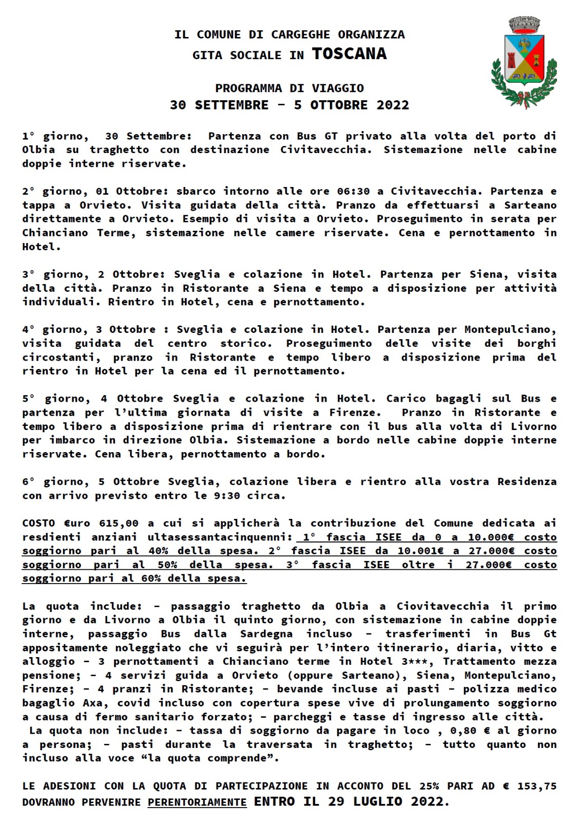 IL COMUNE DI CARGEGHE ORGANIZZA
